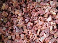 今日の汁物は、給食室手作りの川俣シャモ入り肉だんごが入っています。冷たいお肉(約17kg)をねぎなどとこねて、肉だんごをひとつひとつ作ってくださいました。川俣シャモのうまみ、調理員さんの愛情たっぷり手作りの肉だんごを味わっていただいて欲しいと思います。
