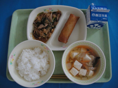 ごはん サンラータン 春巻き マーボー春雨 牛乳