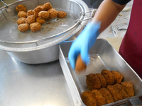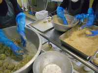 約170個をひとつひとつ形成して、衣をつけて揚げました。手作りコロッケのお味はいかがでしょう?