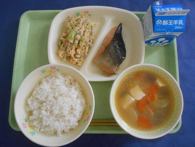 2020年6月18日 12時21分ごはん けんちん汁 さけのバターしょうゆ焼き ごぼうサラダ 牛乳