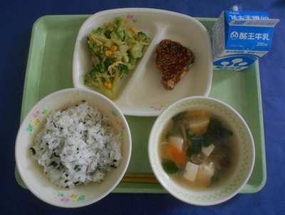 今日の午後は、1年生の体育祭です。給食をしっかり食べて、頑張ってほしいと思います。