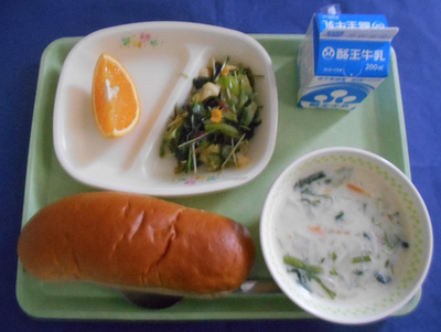 昨日7日は、人日の節句でした。お家で七草がゆを食べた人もいるのではないでしょうか?七草がゆには、ごちそうに疲れた胃腸をいたわり、ビタミンを補(おぎな)う効果があります。給食では、七草の入ったシチューを用意しました。1年の豊作(ほうさく)と無病(むびょう)息災(そくさい)を願って、いただきましょう。