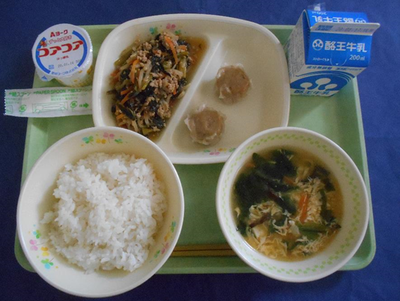 今日の給食の小松菜ともやしとひき肉のオイスター炒めは、1年5組の武田(たけだ) 理玖(りく)さんが考えたレシピです。「給食の後の5・6時間目と部活にしっかり取り組めるような栄養たっぷりの炒め物にしました。」今日は、中華料理で組み合わせてみました。理玖さんの考えてくれたオイスター炒めを、味わっていただきましょう☺