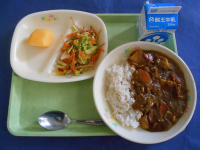 今週一週間、朝食は食べて来れたでしょうか?バランスはどうでしたか?なぜ食べることができなかったのか、なぜバランスが悪くなってしまっていたのか、振り返ってみてください。今日はみんなの大好きなカレーライスです。かむことを意識して食べ過ぎないようにしましょう。