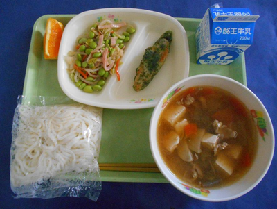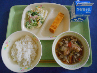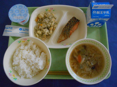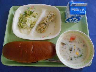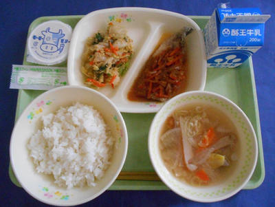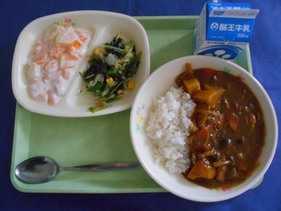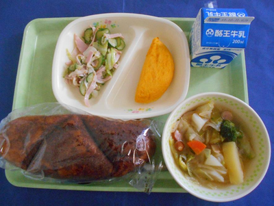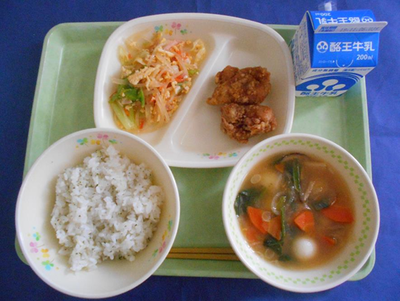 いままで鶏のからあげは1人1つでしたが、今日は大きさを小さくして1人2つにしてみました。生徒・先生ともに大人気のからあげですが、今日のからあげのお味はいかがだったでしょうか…?