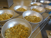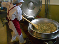 じゃがいもは、15Kg使用しています。そのほかに、大豆とトウモロコシ、ちりめんじゃこが入っています。初めてのメニューでしたが、お味はいかがでしょうか・・・?