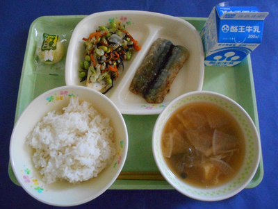 みなさん給食を食べる時に、机にひじはついていませんか?お椀(わん)を持っていますか?料理のある方向を向いていますか?どうでしょうか。よい姿勢で食べることは食事のマナーの一つです。また、よい姿勢で食べることは消化をよくします。学校でも家でも気をつけましょう。