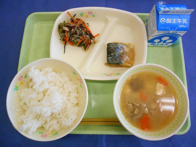 ごはん 豚汁 さばのみそ煮 ひじきサラダ 牛乳
