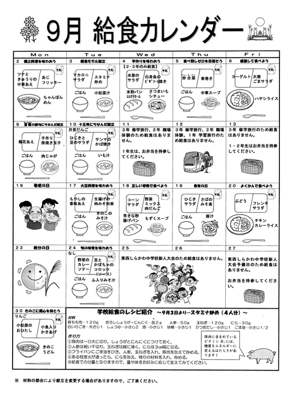 明日は給食がありませんので、お弁当の準備をお願いいたします。