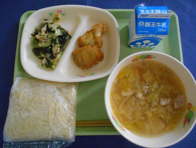今日の副菜の炒合菜(チャーホーサイ)は、豚肉と野菜を炒め合わせた料理です。初めて聞く名前でどんな料理か気になっていた人もいたのではないでしょうか。今日はみなさんの大好きな中華料理です。食べ残しゼロを目指していただきましょう。