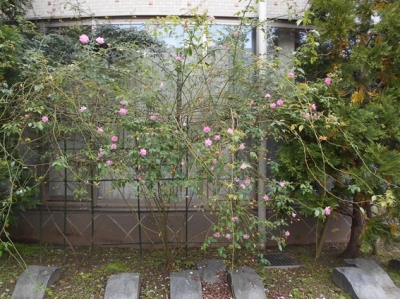 2017年10月11日 10時50分中庭を見ていると、ピンクのバラが前より咲いているようです。