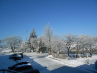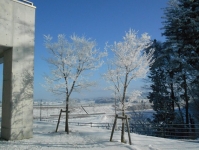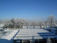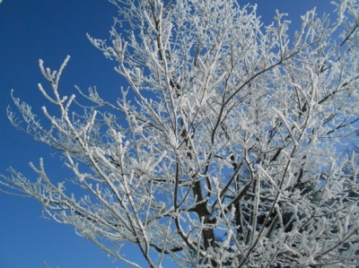 霧氷(むひょう)・・過冷却された霧粒が風で木などに吹きつけられ、
