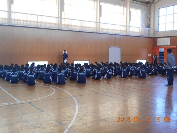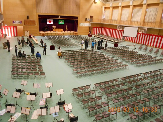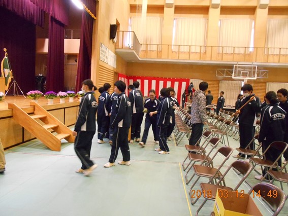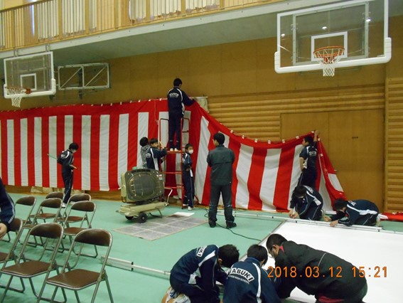 2018年3月12日 17時00分3年生が帰った後は、2年生で、明日の卒業式準備です。
