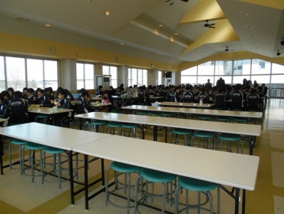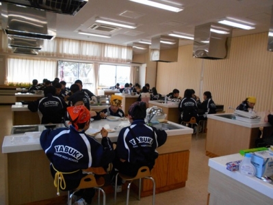 2018年2月20日 15時05分5校時目に家庭科室にたくさんの生徒たちがいます。