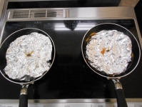 調味料が沸騰したら魚を入れます。 落し蓋(アルミホイル)をします。20分煮込んだら出来上がり!!