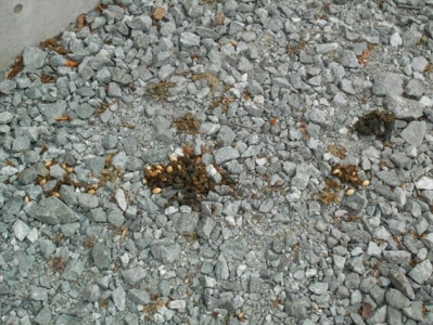 2018年2月21日 10時11分職員駐車場からD棟の間の砂利が敷いてある所に、野生動物が排出したものがありました。