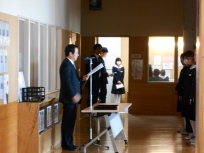 生徒会長あいさつが終わってから、校長先生のお話です。