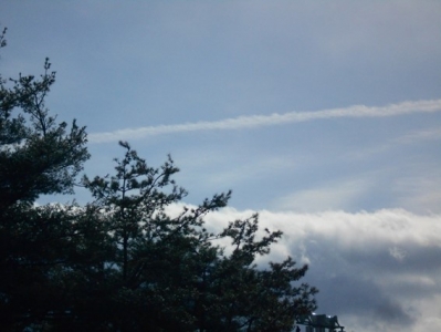 気持ちの良い空を見上げると、カメラにおさまりつかないなが~~~い飛行機雲が見えました。