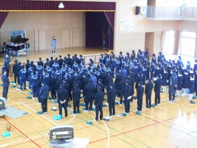 2018年2月19日 12時15分3年生は、体育館で卒業式で歌う、歌の練習をしていました。