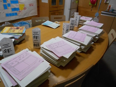 2018年2月5日 17時38分放課後、生徒たちが帰ったので、明日の実力テストの準備がしてありました。