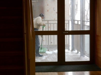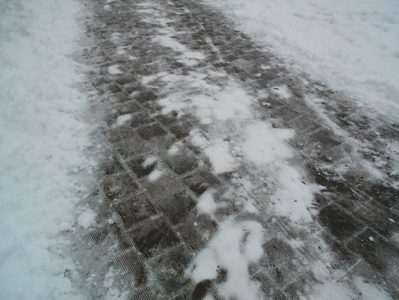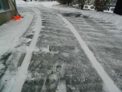 雪が降ると、踏みしめる前に雪を掃かないと雪が圧雪状態になり、