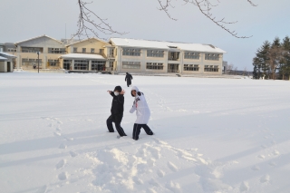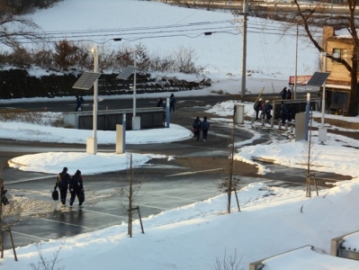 2018年1月31日 13時48分生徒たちが歩くところの雪を片付けてくれています。