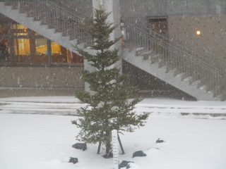 気温が低いため、解けることなく、雪のままです。(ザラメ雪のようです。)