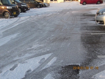今朝の道路の状態・・・。氷点下の気温。・・・総合的に考えれば・・・