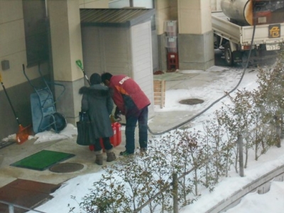 氷点下です。これではあの場所が、生徒が歩く場所が解けません。