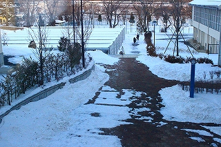 凍っていると思って慎重に歩きましょう。