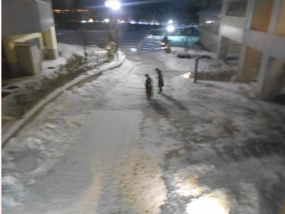 雪です。一部の生徒たちが帰るころに降らなくても・・・。