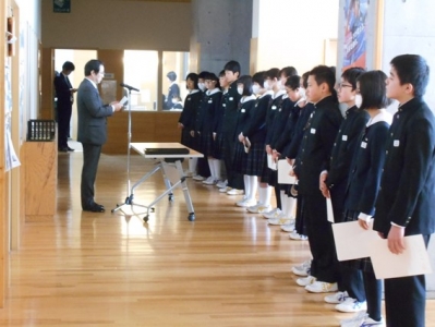 寒い時には放送朝会なのですが、表彰されたこの雄姿を全生徒たちに見せられないのが残念です。