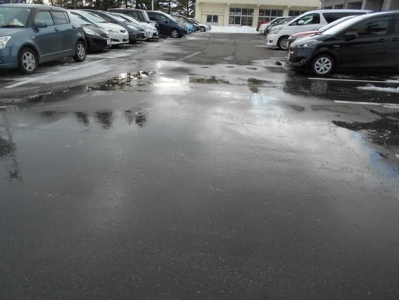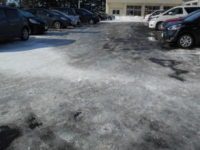 これなら、職員駐車場の氷は解けているに違いない!。