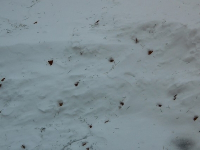 分かちます。白い雪の上に黒いポチポチになっているところです。