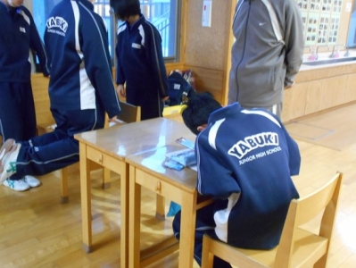 2018年1月29日 17時20分廊下に自分の机を出し、何か一生懸命に書いている生徒がいました。