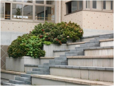 2017年9月7日 15時03分体育館に行く途中の廊下から中庭が見えます。