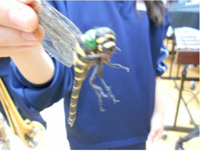 オニヤンマは生徒の指に羽を捕まえられて、でも、少し抵抗もしていました。