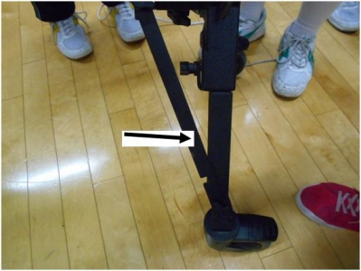 矢印の所に挟まったそうです。でも、やさしい部員に救済され、写真を撮られた後は、
