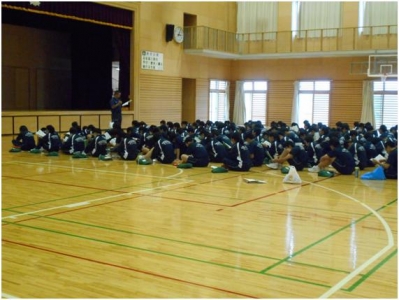 2017年9月6日 16時06分2年生の職場体験で、自衛隊に行く生徒たちに説明がありました。