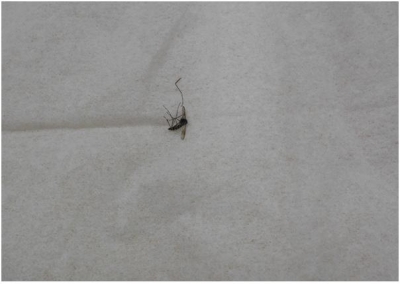 優しくたたいたその蚊はまだ動いていました。(足はとれていましたが・・・。)