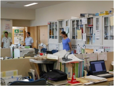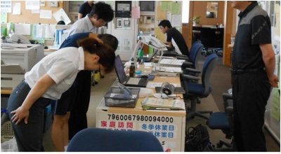 出張です。そのため、帰って来た先生や、居る先生方一人ひとりにあいさつをしていました。