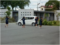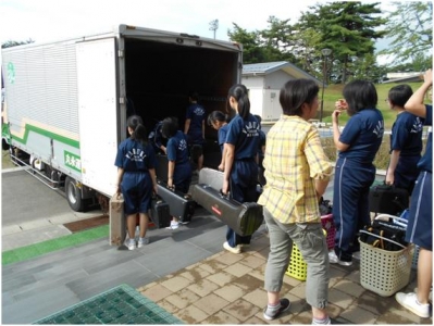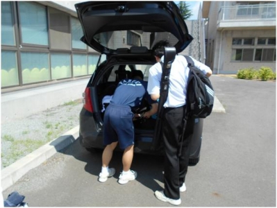 荷物を車に乗せます。今回は部活顧問の自家用車で行きます。