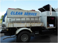 トラックの上には2種類のホース、そして、矢印の部分には「パワージェット」と書かれた