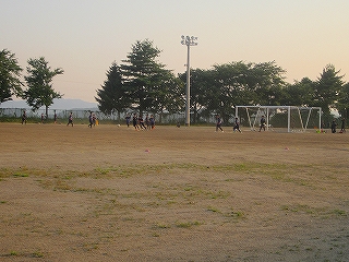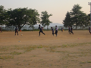 夏の生暖かい夕日に照らされながら思いっきり練習しているサッカー部。その姿から夏の蒸し暑さをも吹き飛ばす程の情熱が伝わってきます。