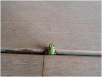 2017年7月11日 09時25分武道場に行く渡り廊下を歩いていると、小さいアマガエルを見つけました。