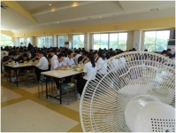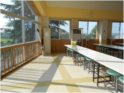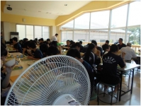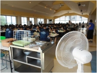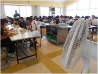 ランチルームも例外ではありません。給食時時では34℃でした。(6台の扇風機稼働です。)