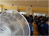 今年度、教室で使用しない扇風機を6台おいて、風を回してみました。