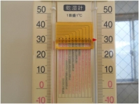 東南方向の温度計は31.5℃、直射日光が入る南西方向の温度計は33.5℃でした。
