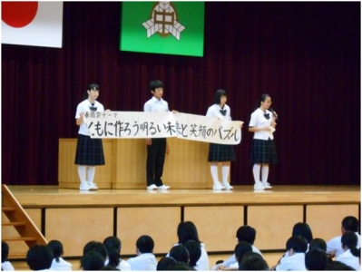 2017年7月10日 08時38分10月に行われる春蘭祭のテーマ発表が朝会時に、生徒会役員によって発表されました。