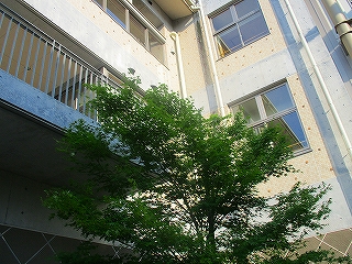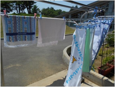 保健室前の物干しには、洗濯した物が風で揺れていました。